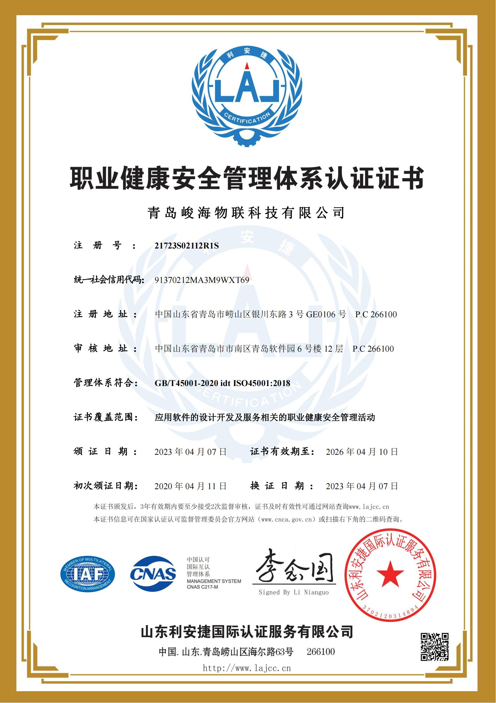 2020年4月,通過“質量管理體系ISO9001”、“職業健康安全管理體系ISO45001”和“環境管理體系ISO14001”三體系認證。