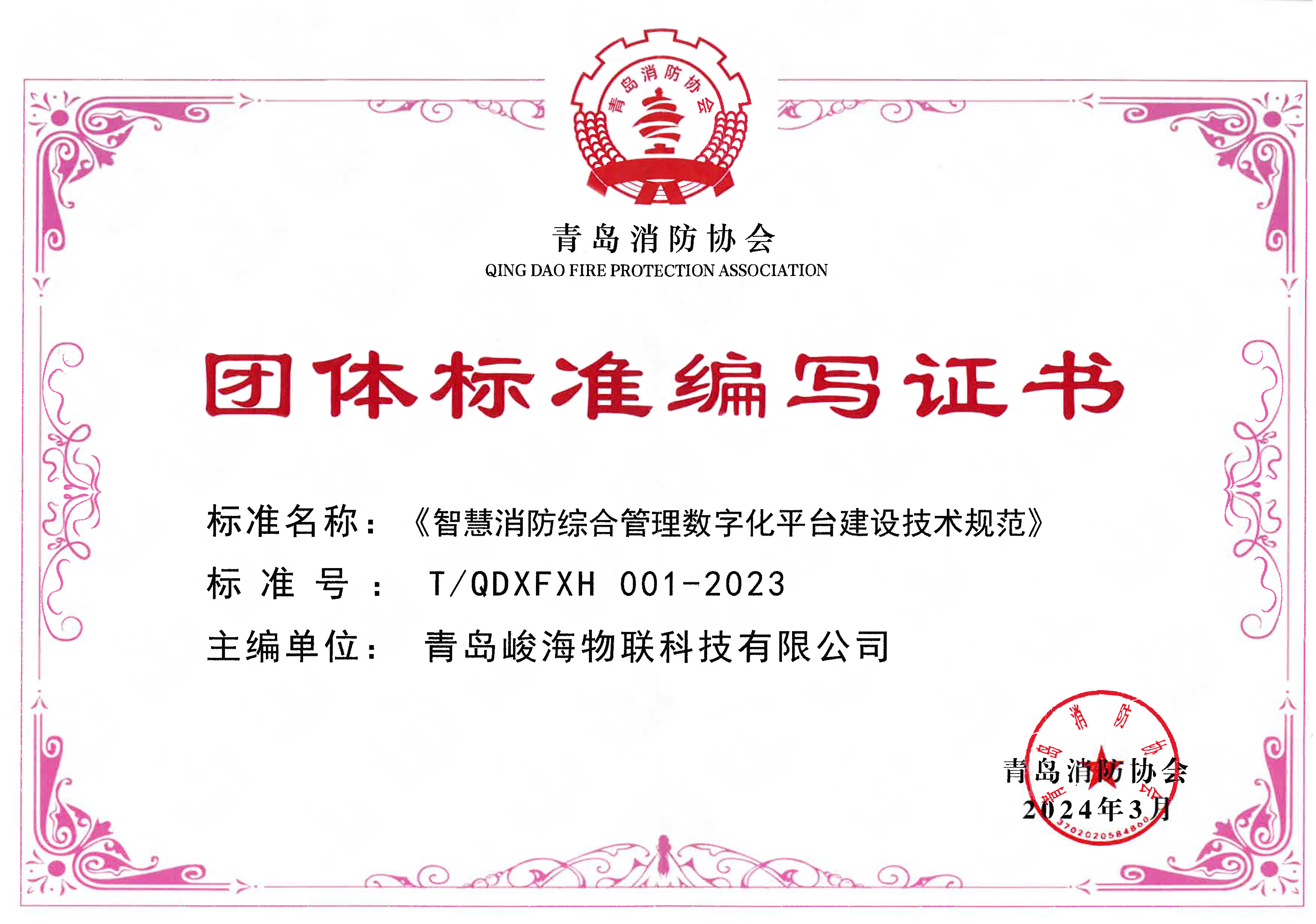 2021年11月,參與編寫《智慧消防平臺建設、運行與維護規范(T/SDBDA 17-2021)》團體標準制定。