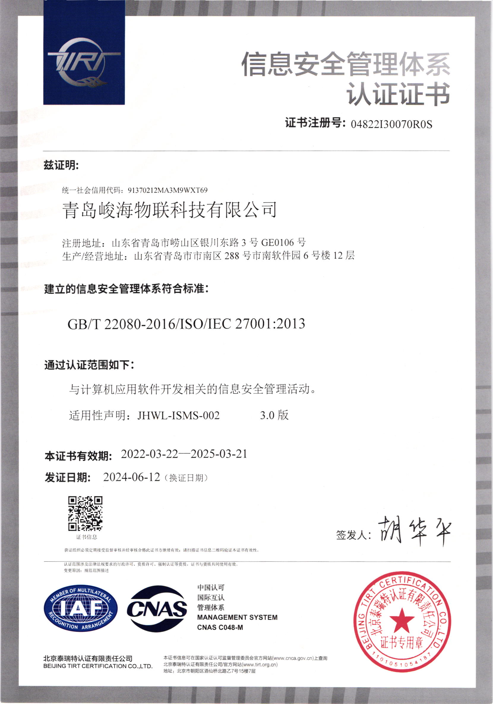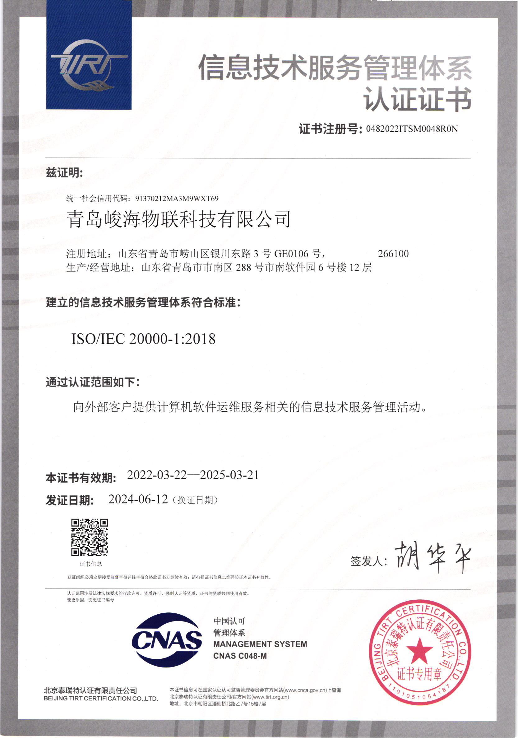 2022年3月,通過ISO27001信息安全管理體系、ISO20000信息技術服務管理體系。