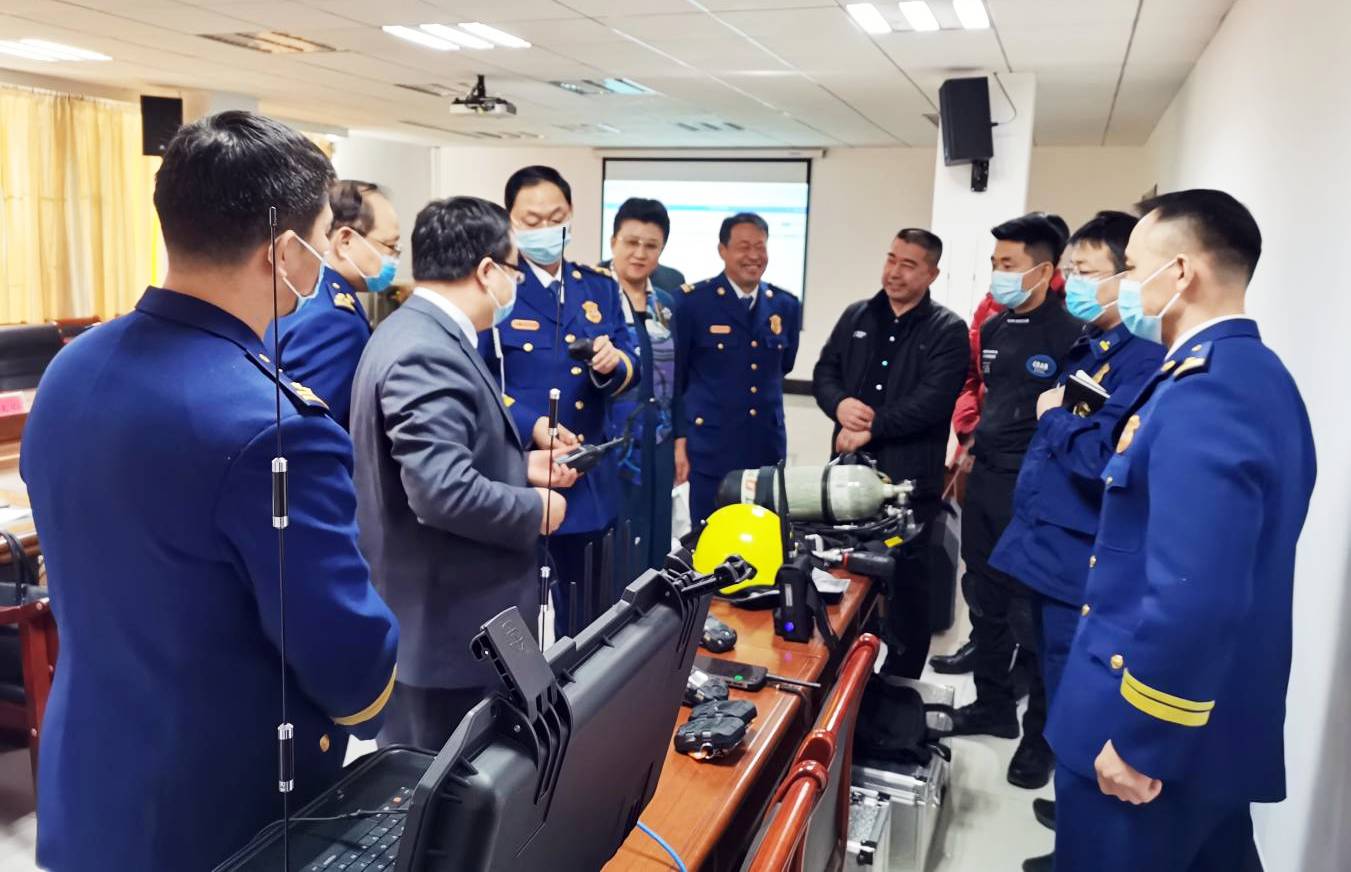 · 2024年4月,濟南市應急管理局黨委委員、副局長魏強一行臨青島,總經理孫藝向魏副局長一行介紹了“綜合應急單兵作戰救援指揮平臺”和單兵作戰裝備的具體功能和應用價值,受到了現場人員的一致好評。