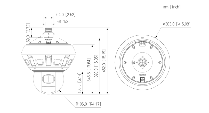 · 鏡頭光圈:全景:F2.0;球機:F1.3;
