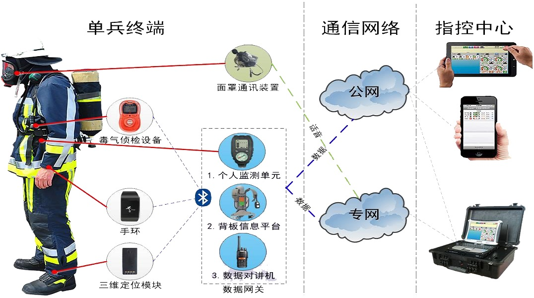 定位+心率+空呼+有害氣體監(jiān)測多系統(tǒng)聯(lián)動設計,實現(xiàn)消防戰(zhàn)士空呼氣瓶壓力監(jiān)測、剩余氣量顯示,及時提醒消防戰(zhàn)士及現(xiàn)場指揮員,實現(xiàn)消防戰(zhàn)士空呼氣瓶壓力監(jiān)測、剩余氣量顯示,及時提醒消防戰(zhàn)士及現(xiàn)場指揮員。設備具有以下特點: