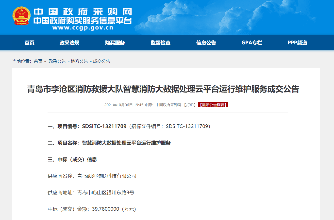 日前,峻海物聯再次中標,成功斬獲“李滄區消防救援大隊智慧消防大數據處理云平臺運行維護服務”項目,為公司業務的可持續發展再添新彩。