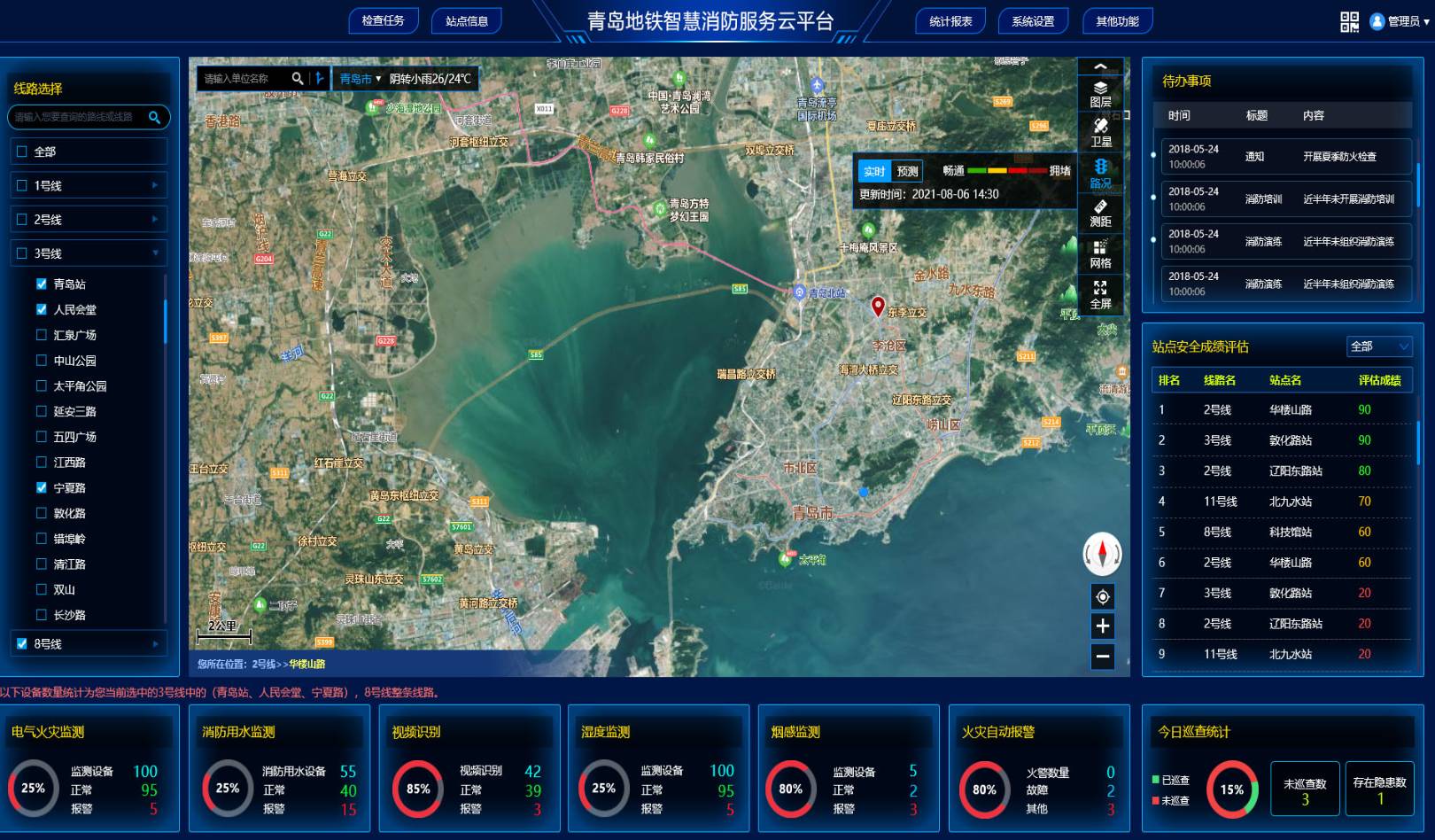 據介紹,“青島地鐵智慧消防服務云平臺”在青島地鐵各級監管機構、各路段與各站點如何有效提高管理,主要體現在以下幾個方面: