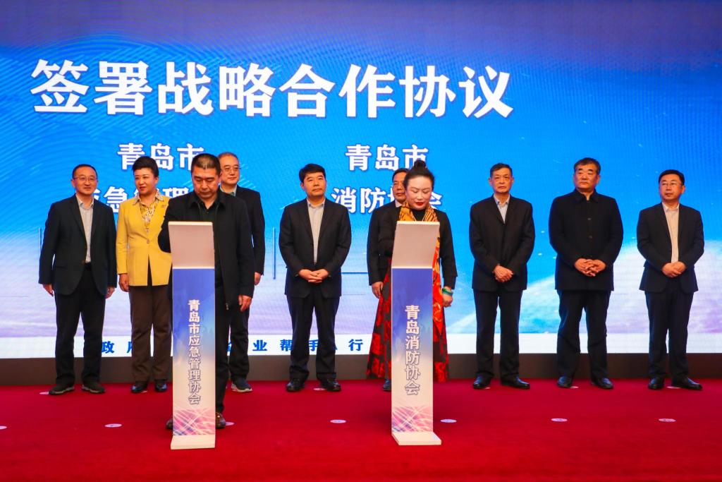 ▲ 孫素朋副會長(前排左一)代表協會與青島消防協會簽署戰略合作協議
