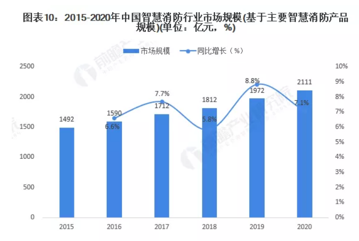 以上數據參考前瞻產業研究院《中國智慧消防行業市場前瞻與投資規劃分析報告》,同時前瞻產業研究院還提供產業大數據、產業研究、產業鏈咨詢、產業圖譜、產業規劃、園區規劃、產業招商引資、IPO募投可研、招股說明書撰寫等解決方案。