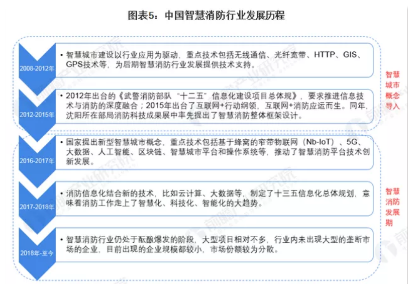 產業發展歷程:主要經歷了智慧城市概念導入和智慧消防發展兩個階段