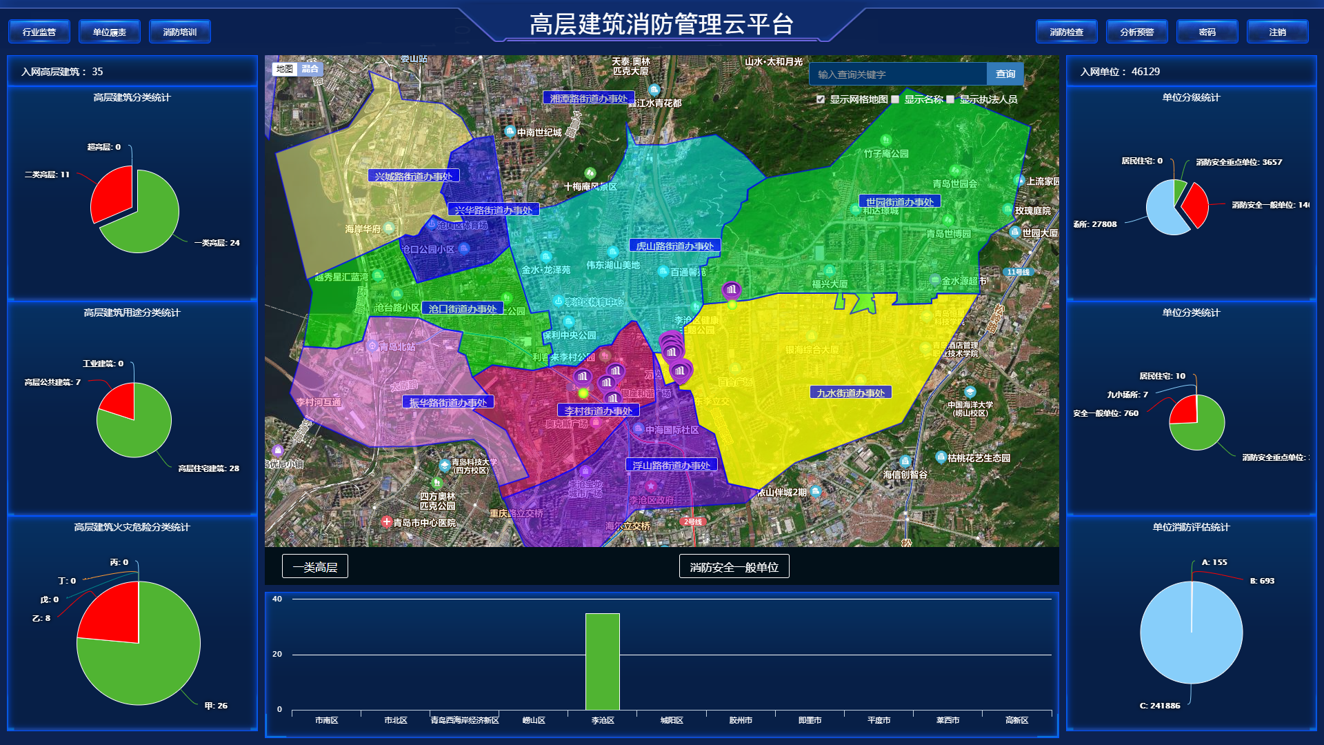 近年來,峻海物聯(lián)先后為青島市南區(qū)和李滄區(qū)建立并接入“智慧消防安全服務(wù)云平臺(tái)”,通過“人防+技防+物防”相結(jié)合的方式,給1500棟高層建筑建設(shè)了消防能力提升項(xiàng)目。